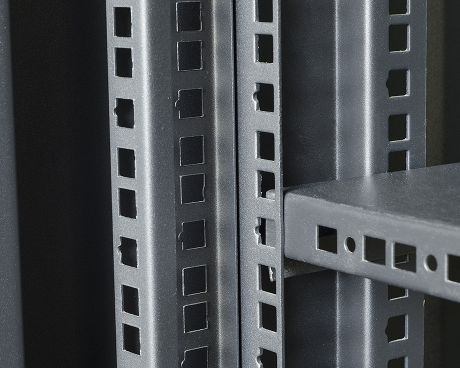 機柜框架、設備安裝機架和托盤選用2.0mm厚的鋼板折型而成,靜態承重達1噸。